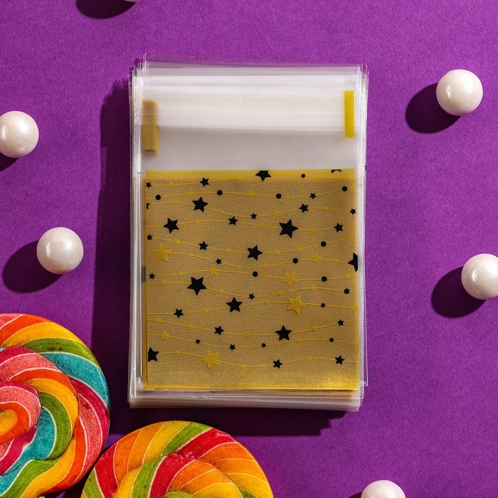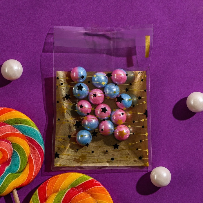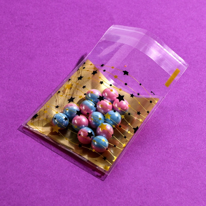 Пакет БОПП с липкой лентой, «Звездочки», 7×7+3 см — Характеристики