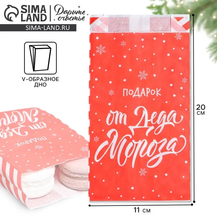 Пакет бумажный фасовочный, крафт, V-образное дно «От Деда Мороза», 20×10×7 см — Характеристики