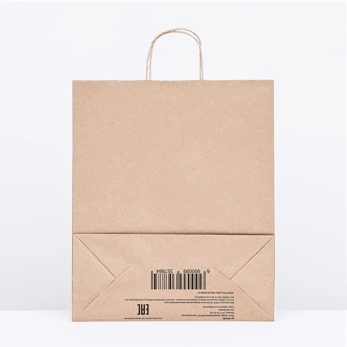 Классический и солидный внешний вид этого пакета придает вашему бренду высокий статус и делает его запоминающимся для ваших клиентов. Надежные ручки из крученой бумаги обеспечивают комфортную переноску и удобство использования.