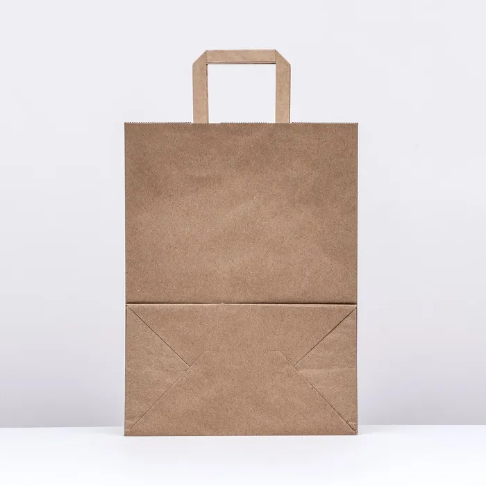 Пакет бумажный, плоская ручка крафт 26×15×35 см, 90 г/м²