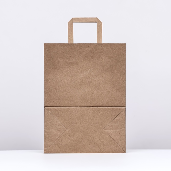 Пакет бумажный, плоская ручка крафт 26×15×35 см, 90 г/м² — Характеристики