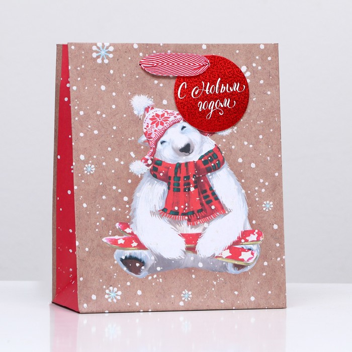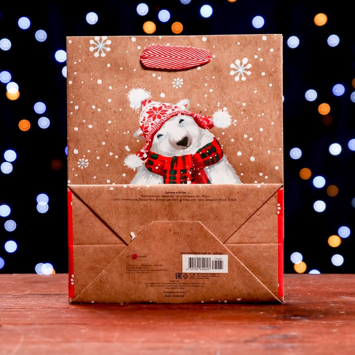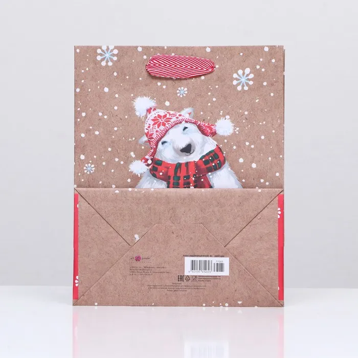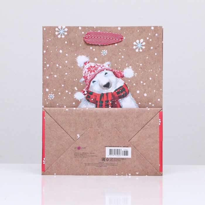 Пакет бумажный подарочный новогодний крафт "Белый медведь" 18 х 22,3 х 10 см. — Характеристики