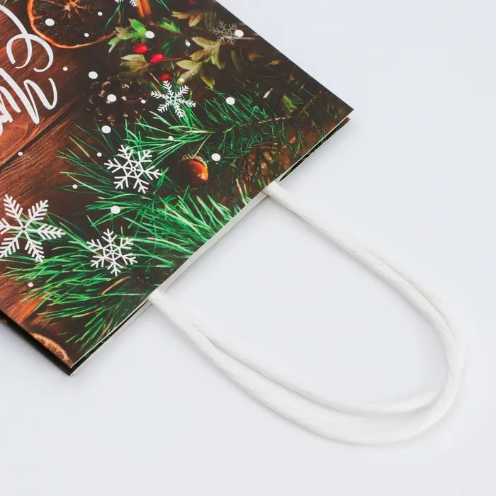 Пакет бумажный подарочный новогодний крафт «Чудеса» 15×21×8 см — Характеристики
