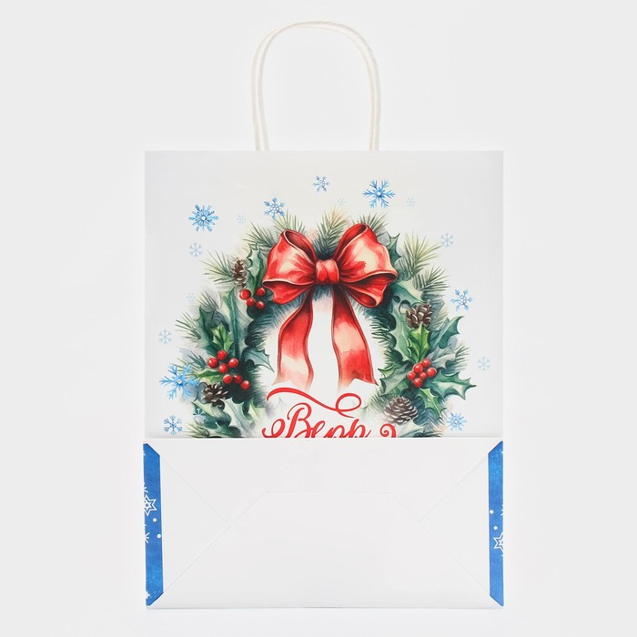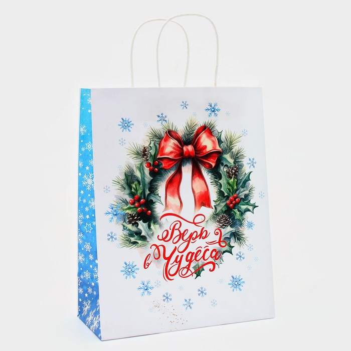 Пакет бумажный подарочный новогодний крафт «Чудеса» 32×26×11 см — Характеристики