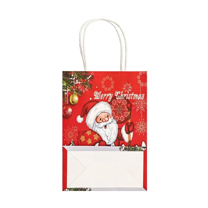 Пакет бумажный подарочный новогодний крафт «Дед Мороз с подарками» 120 г/м 15×8×21 см — Характеристики