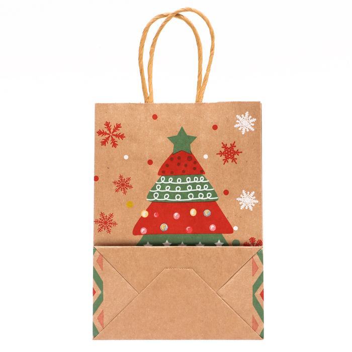 Пакет бумажный подарочный новогодний крафт «Ёлка», 15×21×8 см — Характеристики
