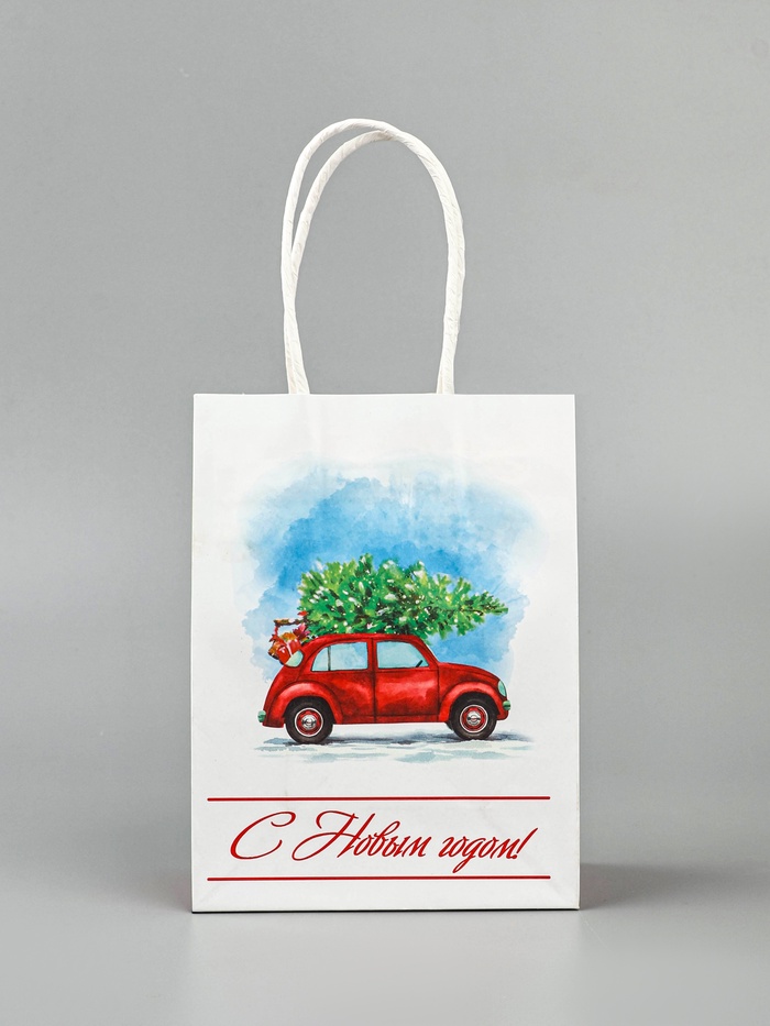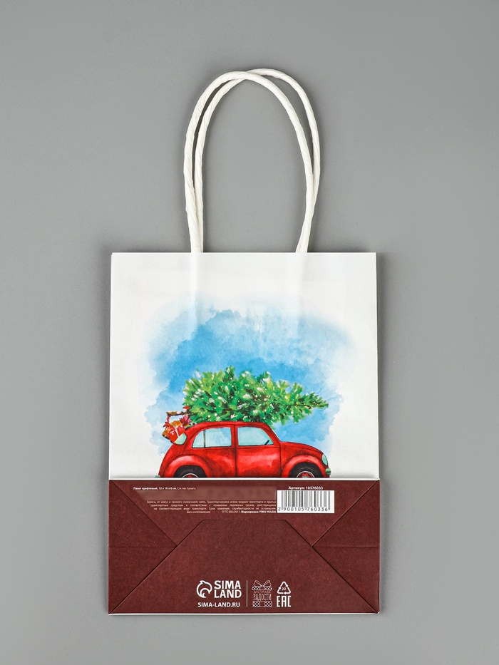 Пакет бумажный подарочный новогодний крафт «Ёлка» 16×12×6 см — Характеристики