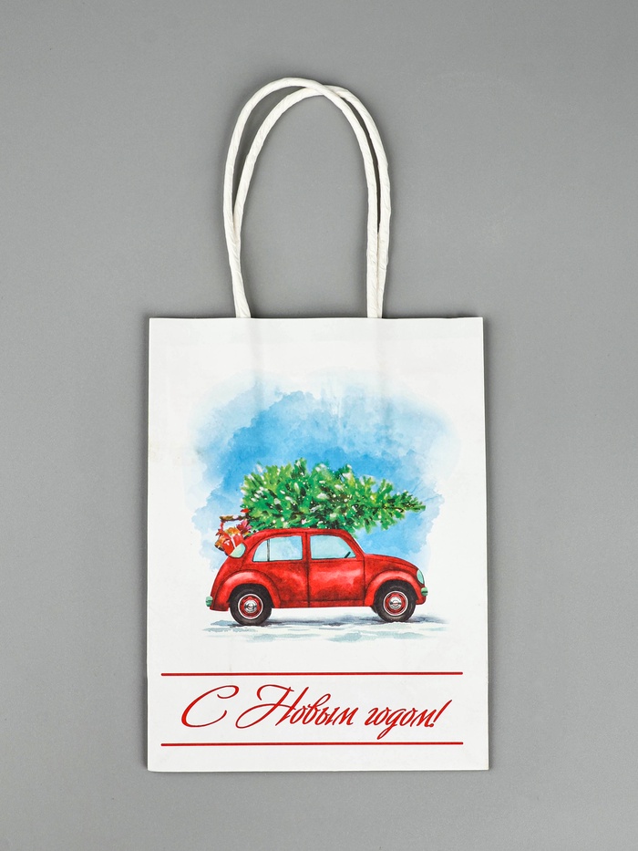 - Новогодний подарочный пакет с ярким, красочным рисунком создаст праздничное настроение.