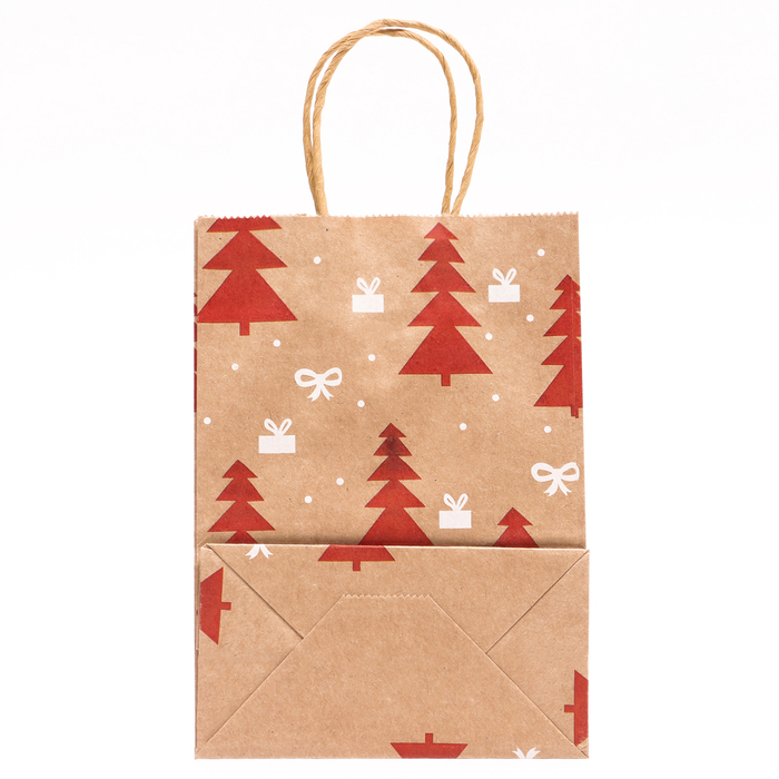 Пакет бумажный подарочный новогодний крафт «Ёлки» 15×21×8 см — Характеристики