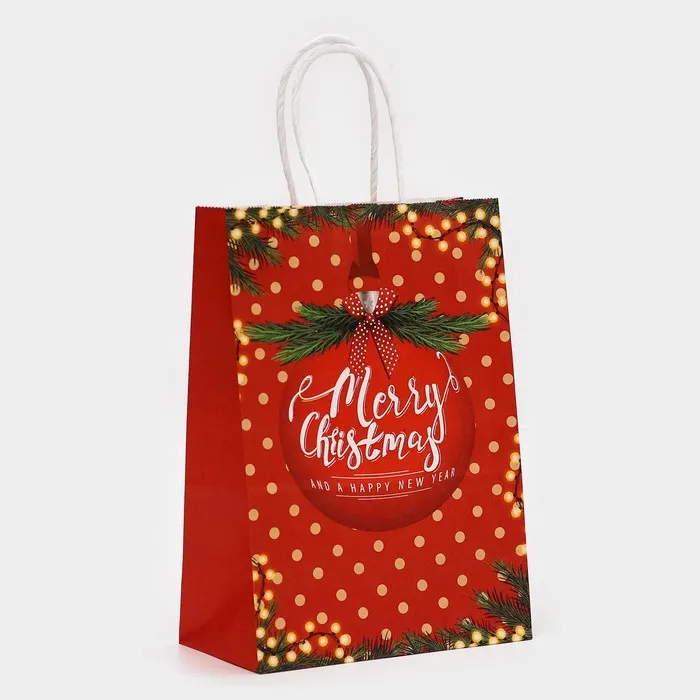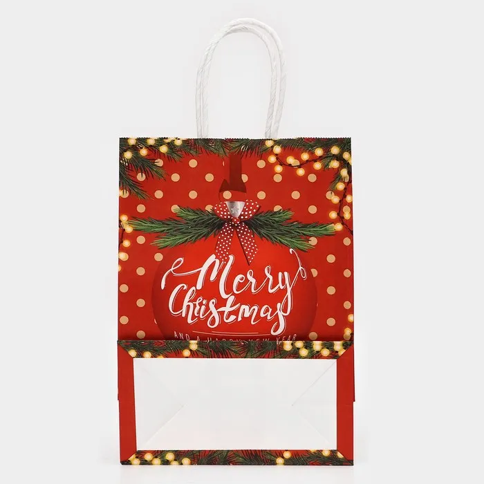 Пакет бумажный подарочный новогодний крафт «Красный Новогодний шар» 15×21×8 см — Характеристики