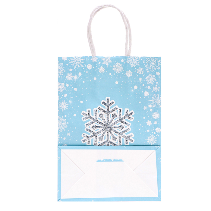 Пакет бумажный подарочный новогодний крафт «Ледянная снежинка» 15×21×8 см — Характеристики