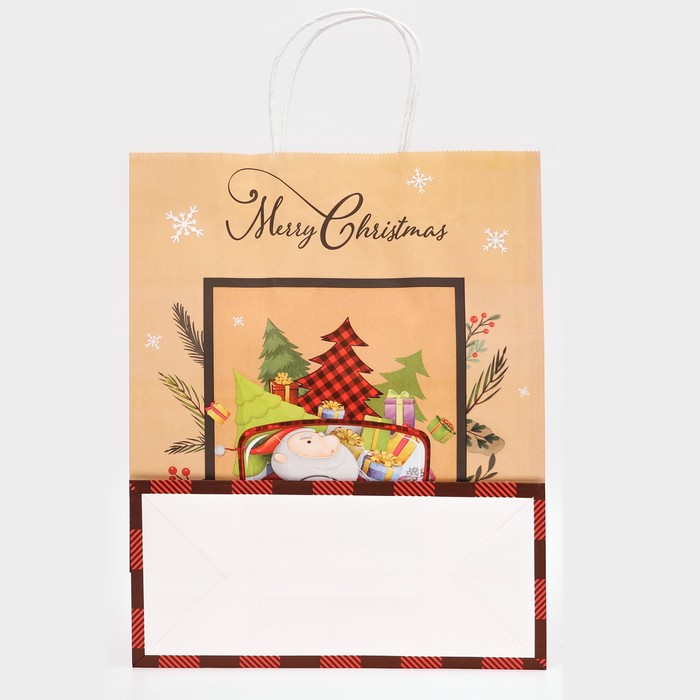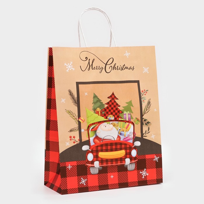 Пакет бумажный подарочный новогодний крафт «Машина с подарками», 33×26×12 см — Характеристики