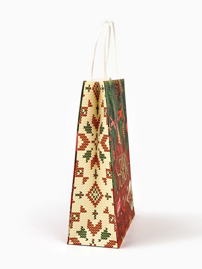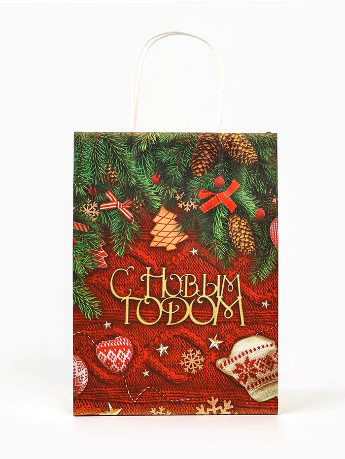 - Новогодний подарочный пакет с ярким, красочным рисунком создаст праздничное настроение.