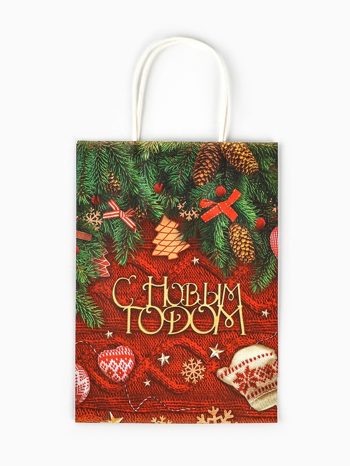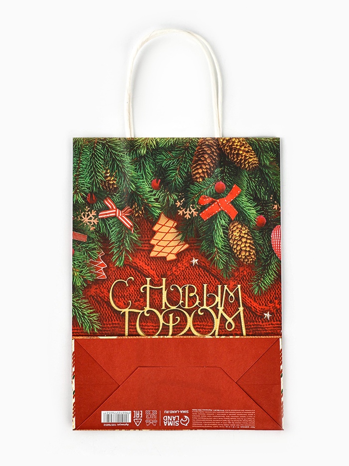 Пакет бумажный подарочный новогодний крафт «Новогодняя атмосфера» 18×8×25 см — Характеристики