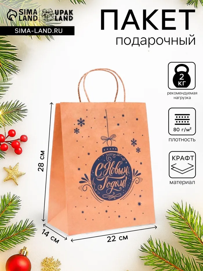 Пакет крафт новогодний 22х 12х 28 см - это стильное и функциональное решение для упаковки и транспортировки подарков в преддверии зимних праздников.