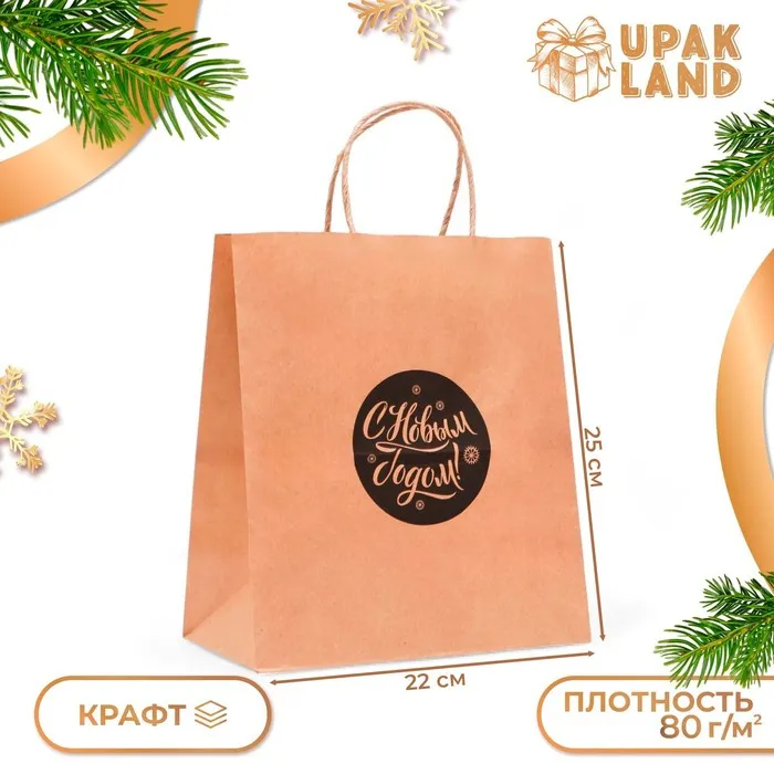 Пакет крафт новогодний 22х 12х 28 см - это стильное и функциональное решение для упаковки и транспортировки подарков в преддверии зимних праздников.