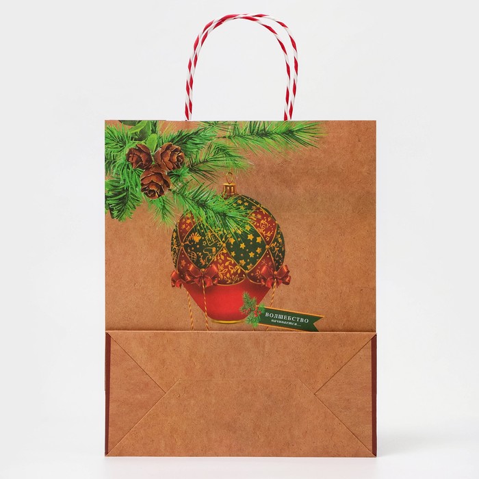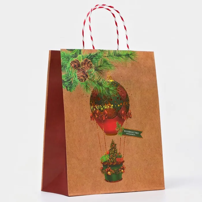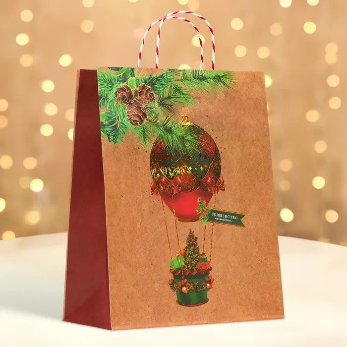 Пакет бумажный подарочный новогодний крафт «Новогодний воздушный шар» 26×32×12 см — Характеристики