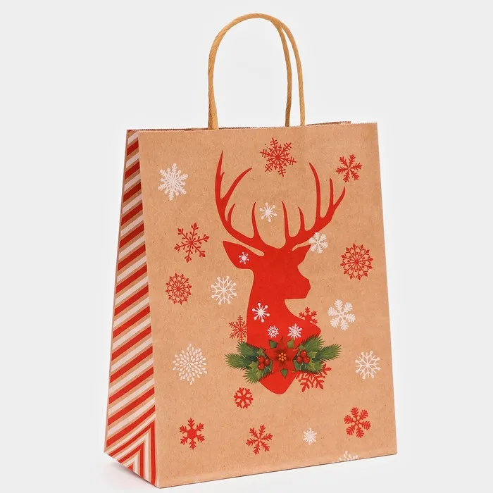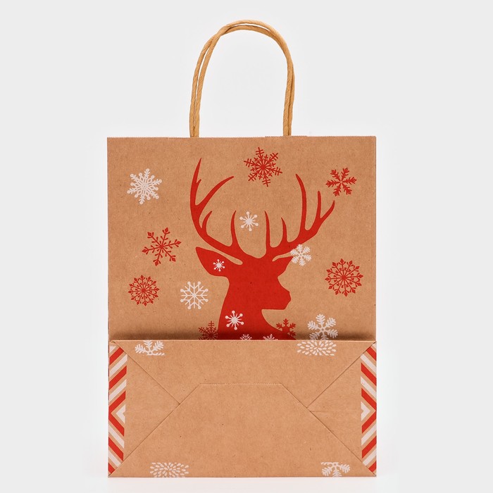 Пакет бумажный подарочный новогодний крафт «Олень», 27×21×11 см — Характеристики