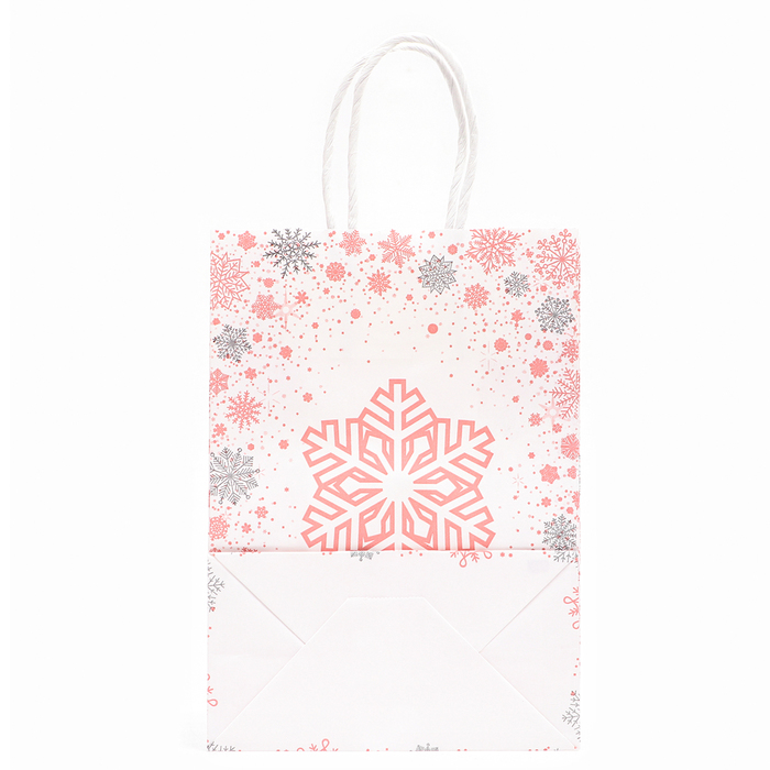 Пакет бумажный подарочный новогодний крафт «Розовая снежинка», 15×21×8 см — Характеристики