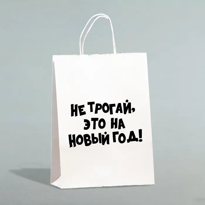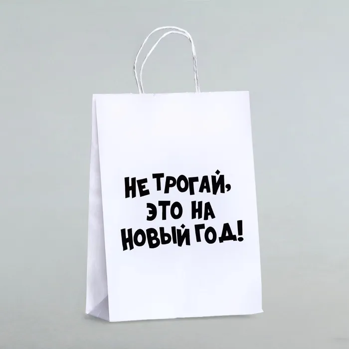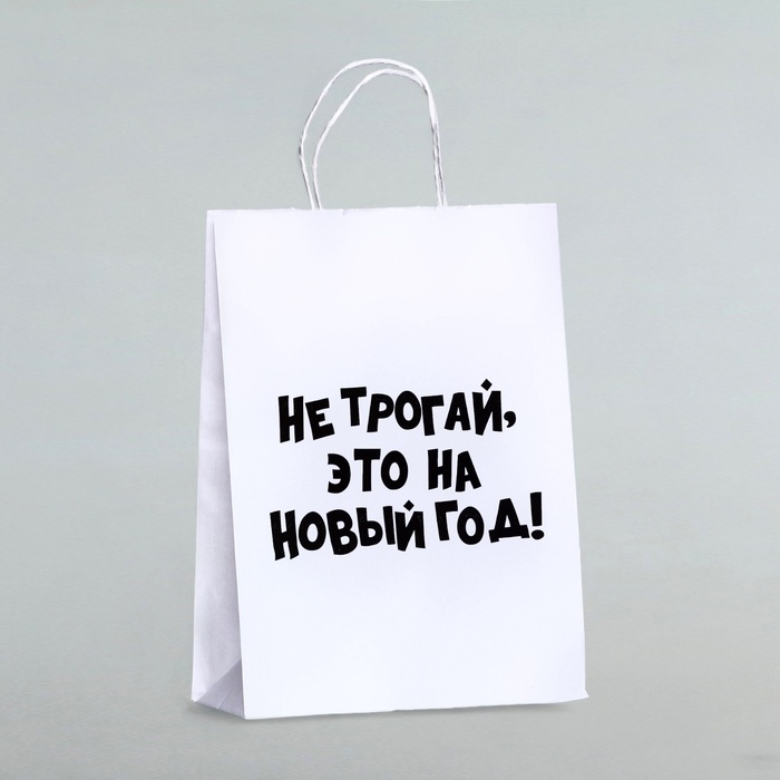 Пакет бумажный подарочный новогодний, крафт с приколами, «Не трогай, это на Новый Год», белый, 28×24×14 см — Характеристики