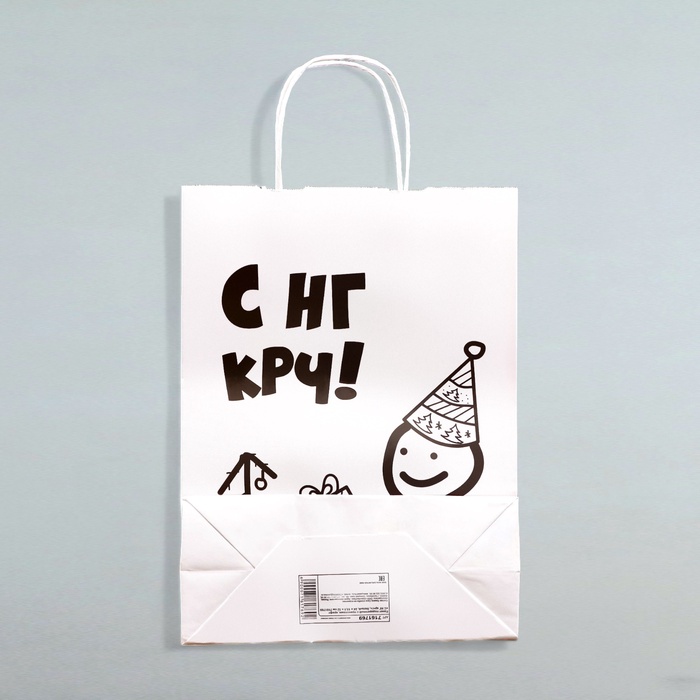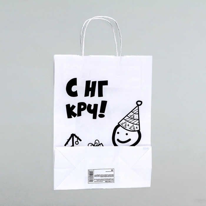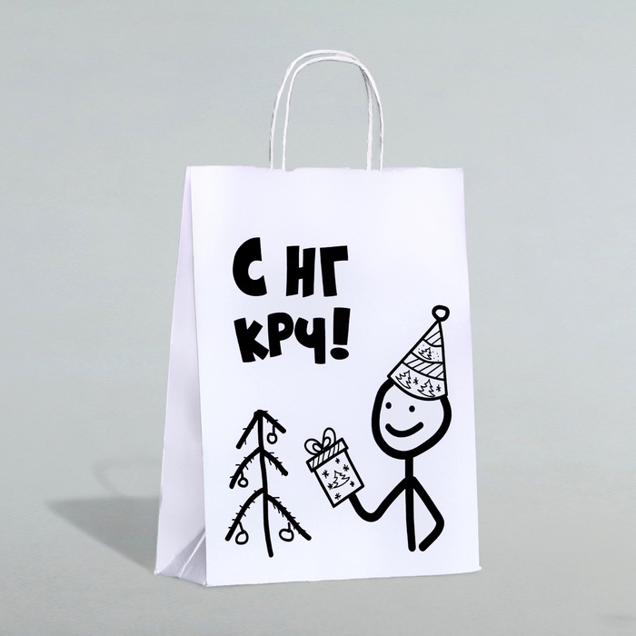 Пакет бумажный подарочный новогодний крафт с приколами, «С НГ крч!», белый, 28×24×14 см — Характеристики