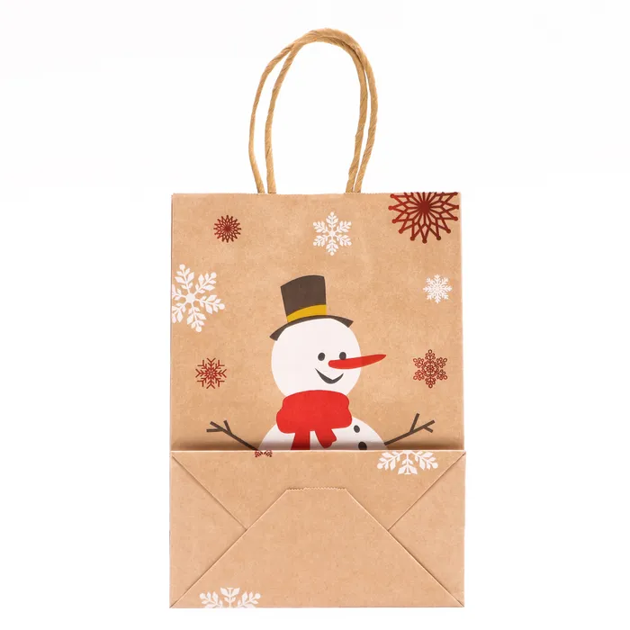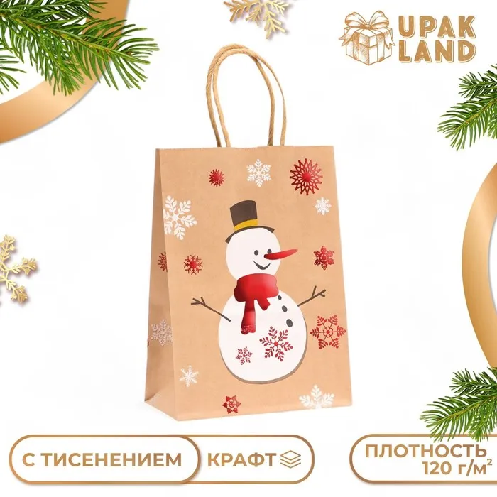 Пакет бумажный подарочный новогодний крафт с тиснением«Снеговик» , 15×21×8 см — Характеристики