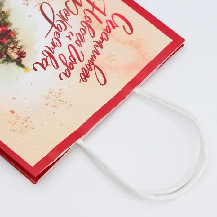 - Новогодний подарочный пакет с ярким, красочным рисунком создаст праздничное настроение.