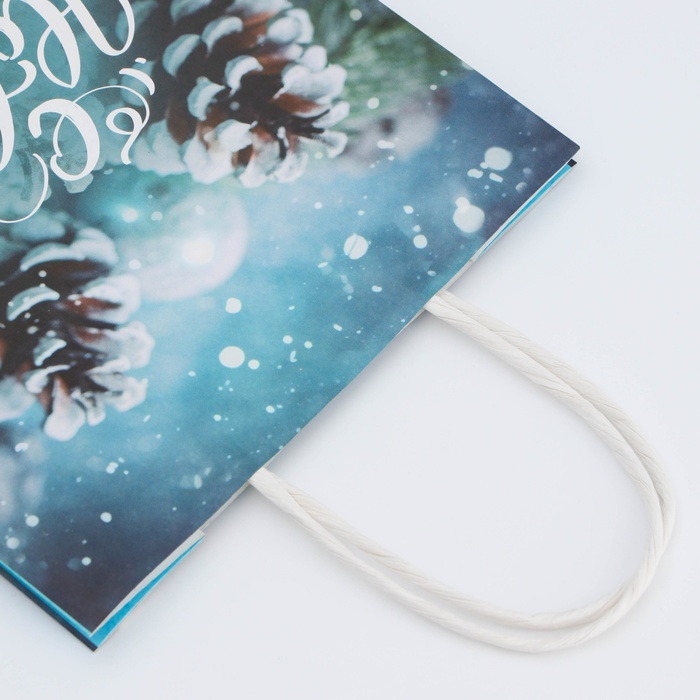 Пакет бумажный подарочный новогодний крафт «Шишки в снегу» 18×8×25 см — Характеристики