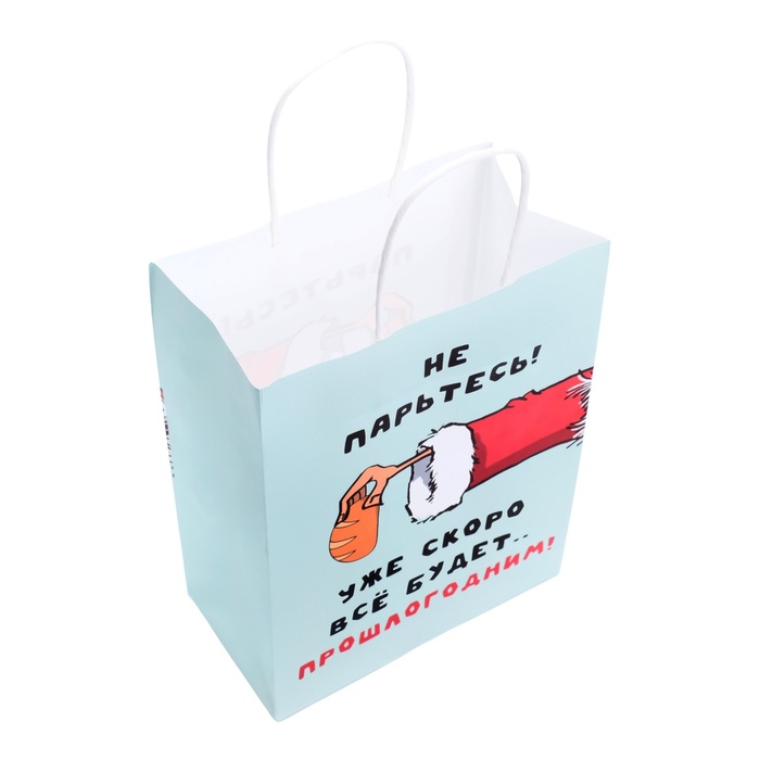 Крафтовый пакет с новогодним приколом — это идеальный выбор для тех, кто хочет добавить нотку юмора и оригинальности в праздничную упаковку подарков.