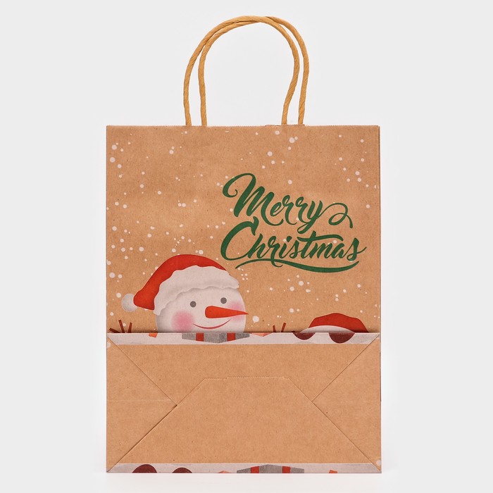 Пакет бумажный подарочный новогодний крафт «Снеговик», 27×21×11 см — Характеристики