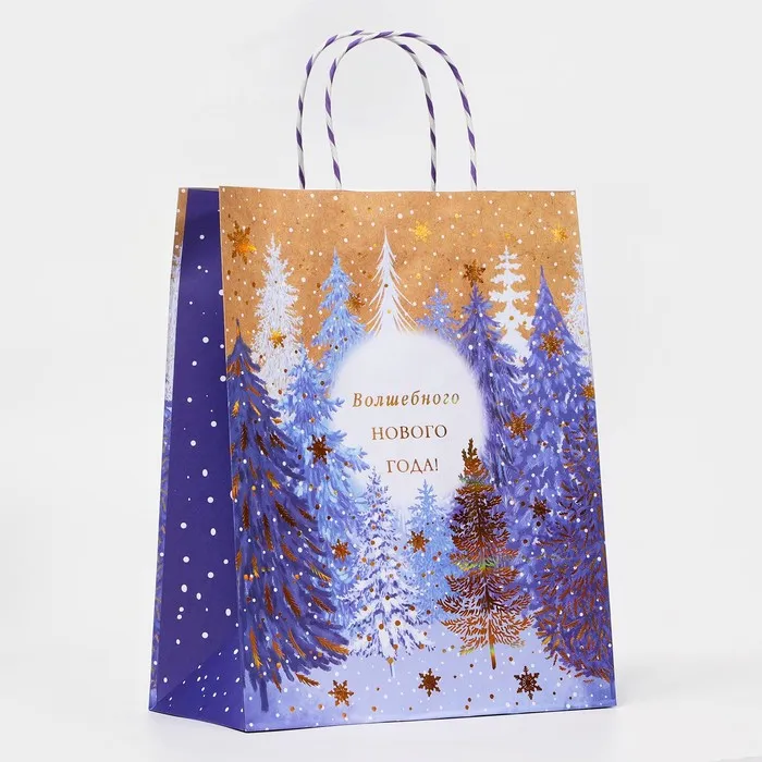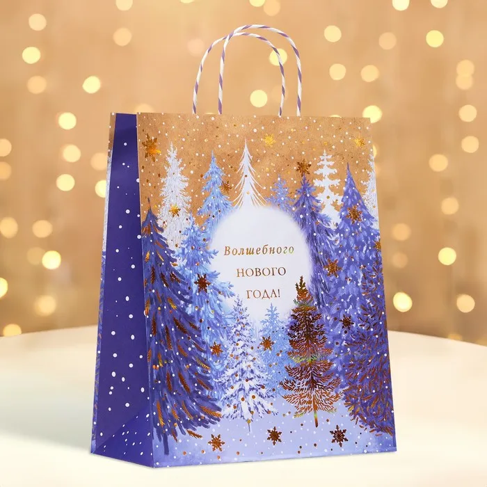 Пакет новогодний подарочный - это яркий и красочный аксессуар, который поможет создать праздничное настроение и сделать подарок еще более запоминающимся.
