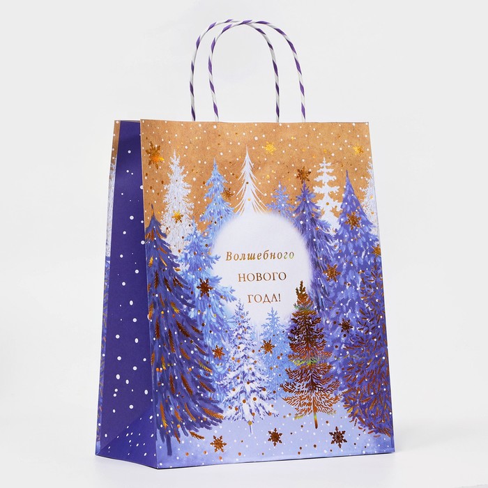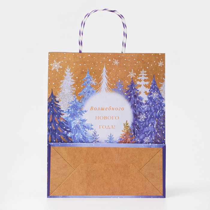 Пакет бумажный подарочный новогодний крафт «Узор ёлки» , с тиснением,18×22.3×10 см
