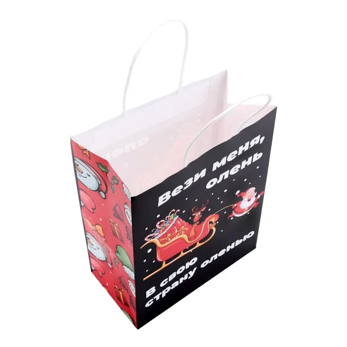 Пакет бумажный подарочный новогодний крафт, «Вези меня» , 27×21×11 см — Характеристики