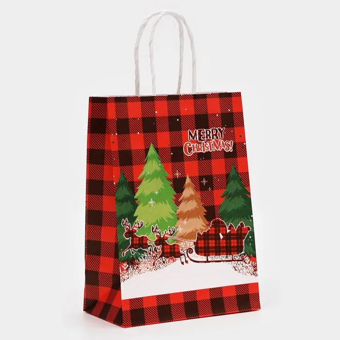 Подарочный пакет крафт новогодний - это стильное и функциональное решение для упаковки и транспортировки подарков в преддверии зимних праздников.