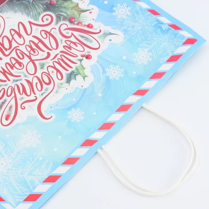- Новогодний подарочный пакет с ярким, красочным рисунком создаст праздничное настроение.
