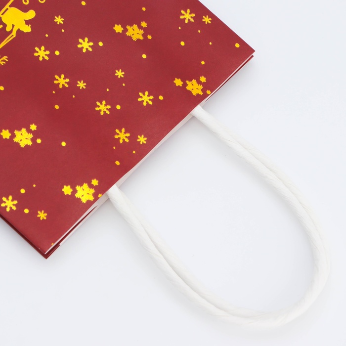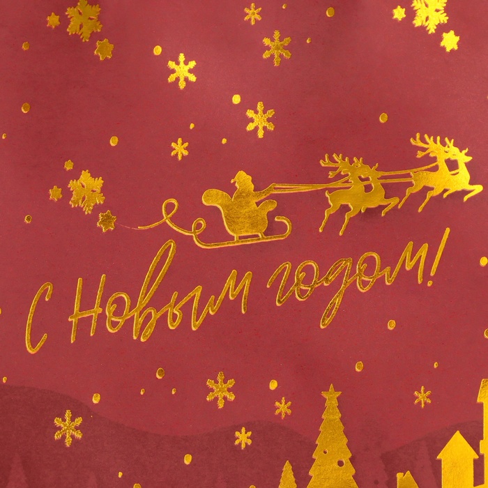 Пакет имеет плотную структуру и приятную на ощупь поверхность, что делает его удобным в использовании. Он украшен яркими новогодними узорами и изображениями, которые создают атмосферу праздника и волшебства.