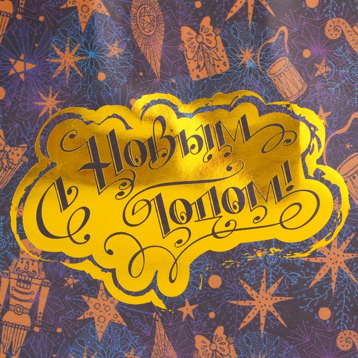 Пакет имеет плотную структуру и приятную на ощупь поверхность, что делает его удобным в использовании. Он украшен яркими новогодними узорами и изображениями, которые создают атмосферу праздника и волшебства.