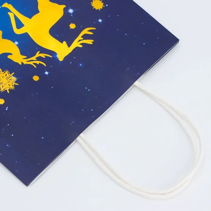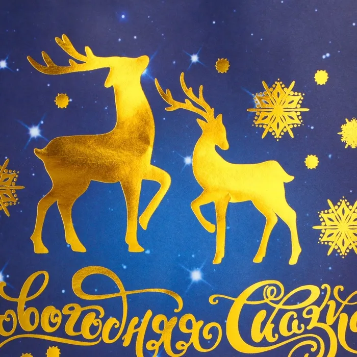 Пакет имеет плотную структуру и приятную на ощупь поверхность, что делает его удобным в использовании. Он украшен яркими новогодними узорами и изображениями, которые создают атмосферу праздника и волшебства.