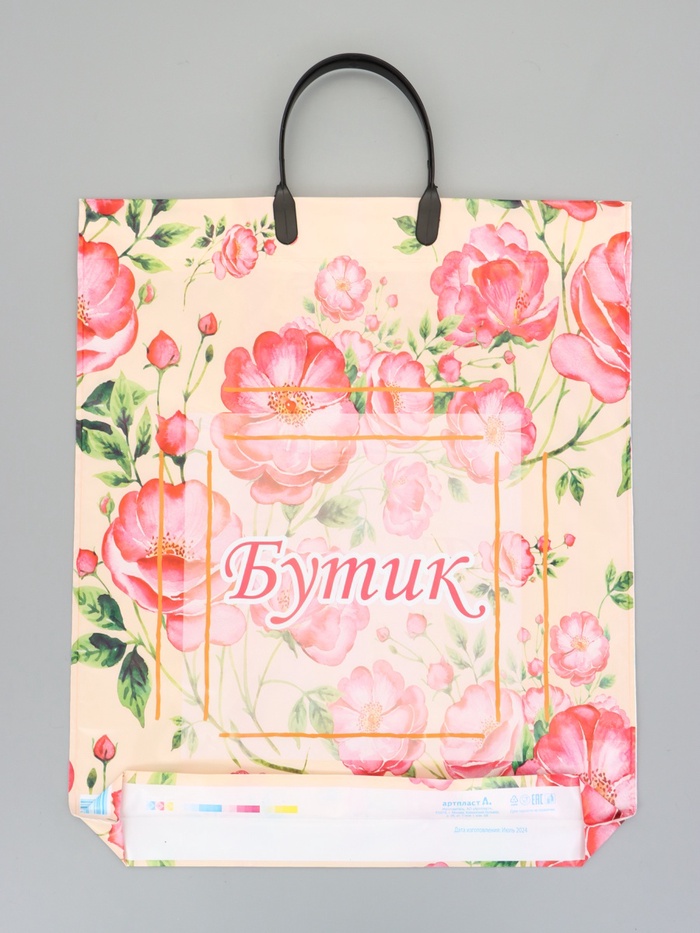 Пакет "Бутик Розы", полиэтиленовый с пластиковой ручкой, 38 х 45 + 3 см, 90 мкм — Характеристики
