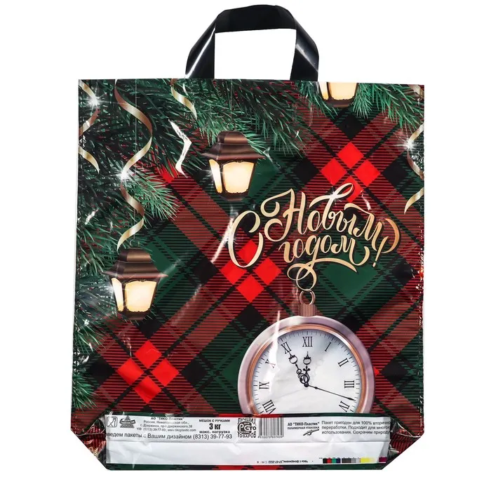 Пакет «Часы с фонариками», полиэтиленовый с петлевой ручкой, 42×38 см — Характеристики
