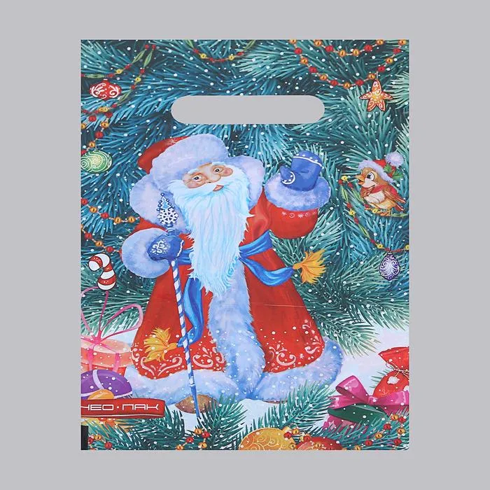 Пакет "Дед Мороз", полиэтиленовый с вырубной ручкой, 20х30 см. — Характеристики