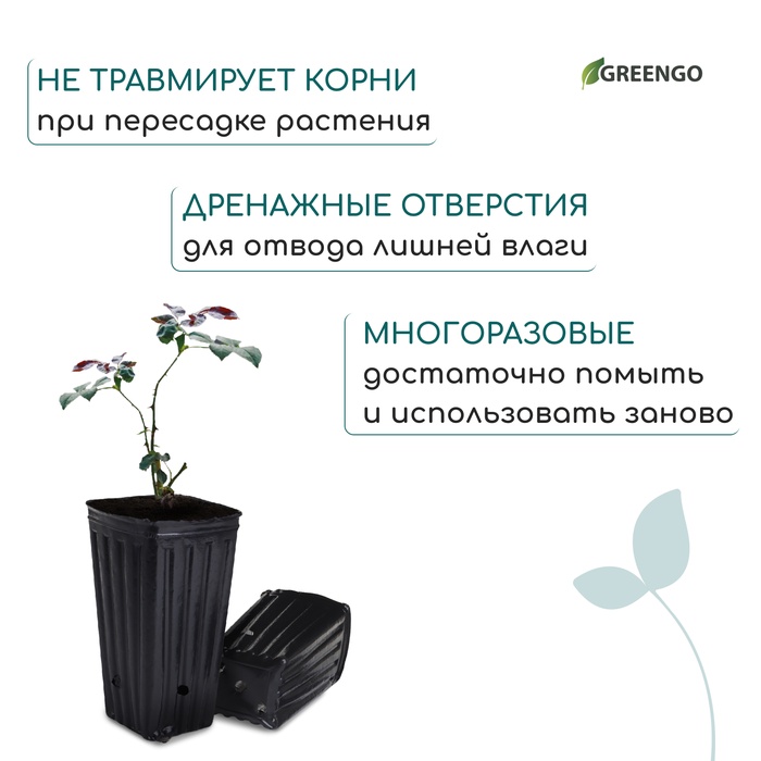 Пакет для рассады, 1,5 л, 11 × 11 см, h = 20 см, полиэтилен, чёрный, Greengo — Характеристики