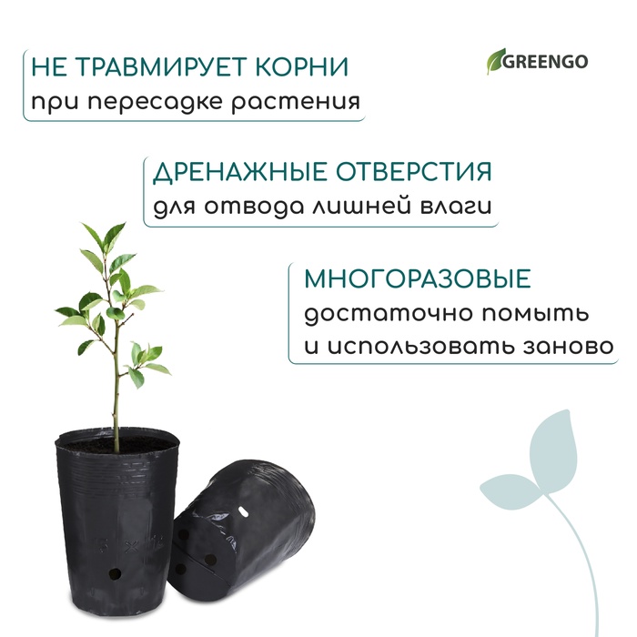 Пакет для рассады, 1,5 л, d = 13 см, h = 18 см, полиэтилен, чёрный, Greengo — Характеристики
