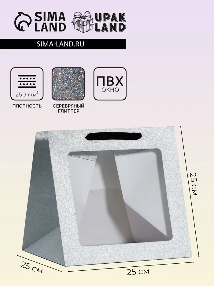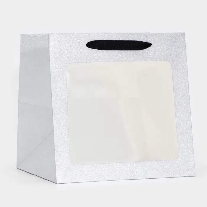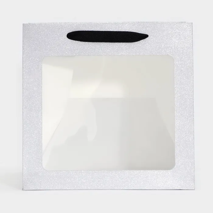 Пакет для торта и коробок, крафт с квадратным дном и окном, серебро с глиттером, 25×25×25 см — Характеристики