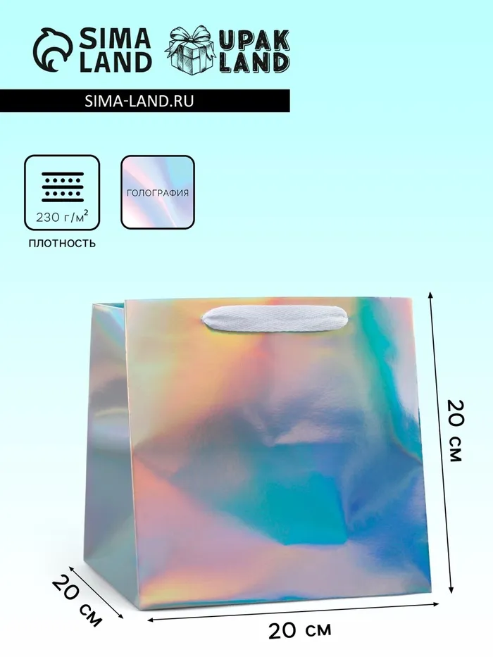 Пакет для торта и коробок, с квадратным дном, голографический, 20×20×20 см — Характеристики