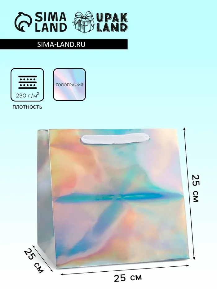 Пакет для торта и коробок, с квадратным дном, голографический, 25×25×25 см — Характеристики