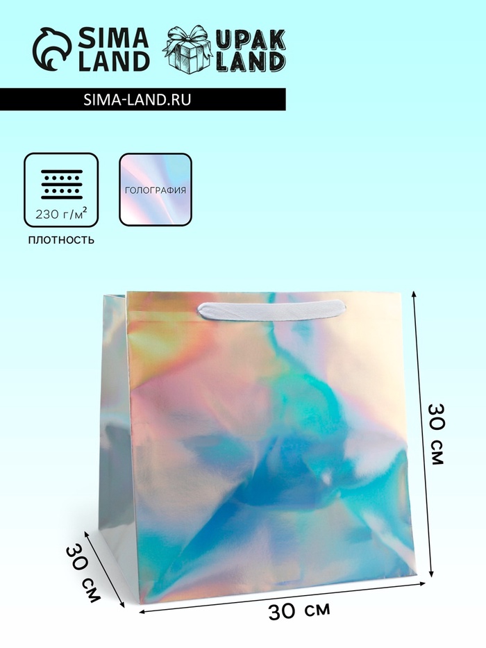 Пакет для торта и коробок, с квадратным дном, голографический, 30×30×30 см — Характеристики