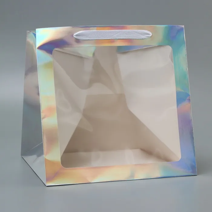 Пакет для торта с квадратным дном и окном, голографический - это стильное и функциональное решение для упаковки и транспортировки тортов.