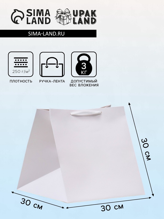 Пакет для торта и коробок, с широким дном, белый, 30×30×30 см — Характеристики