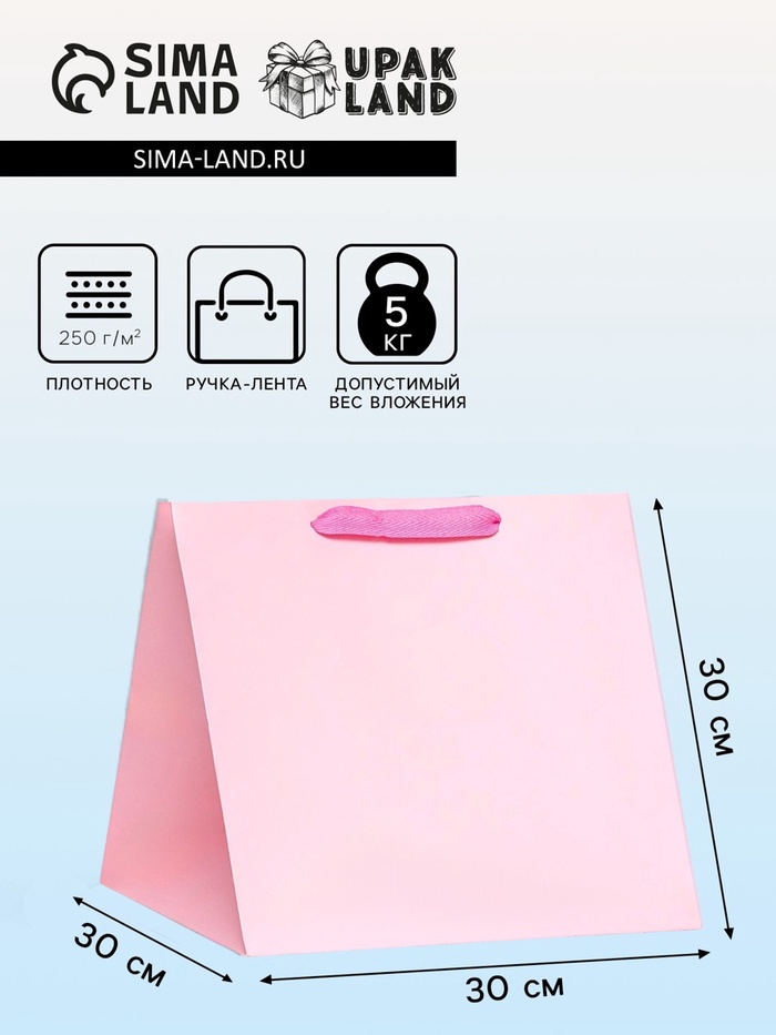 Пакет для торта и коробок, с широким дном, розовый, 30×30×30 см — Характеристики